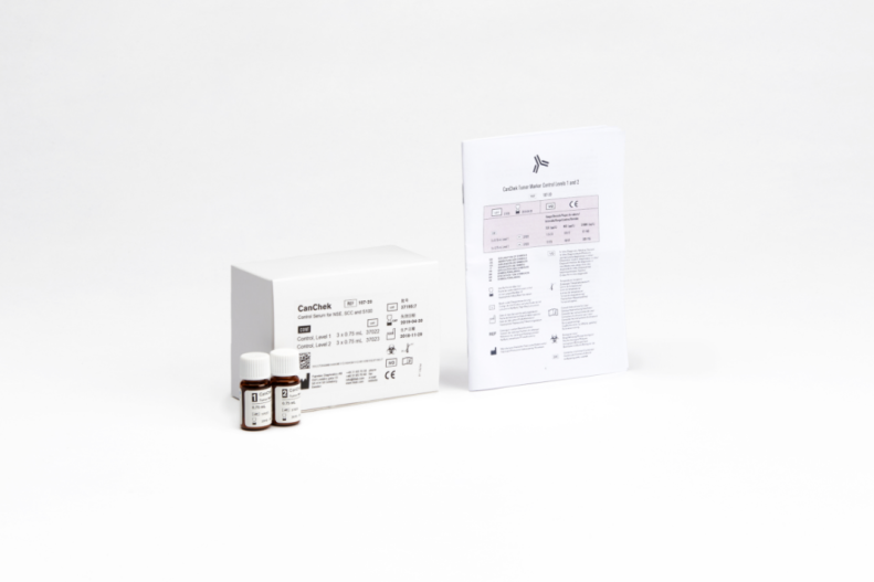 The use of a quality control serum is indicated to verify the performance characteristics of an in vitro diagnostic laboratory test and is an integral part of good laboratory practice. The CanChek controls are available in two levels, in order to provide performance monitoring over the clinical range.