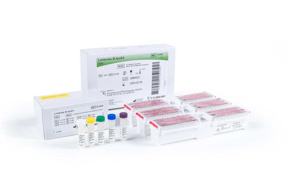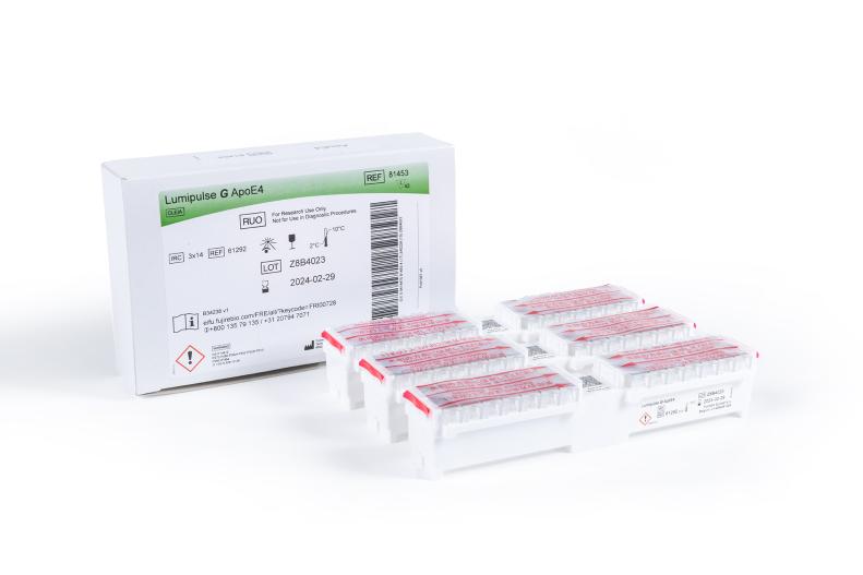 Immunoassay to be used with the automated LUMIPULSE G System for the quantitative measurement of the E4 isoform of the apolipoprotein E (ApoE4) in human plasma. This product is not for use in diagnostic procedures, for ‘Research Use Only’. This product is for professional use only.