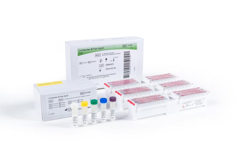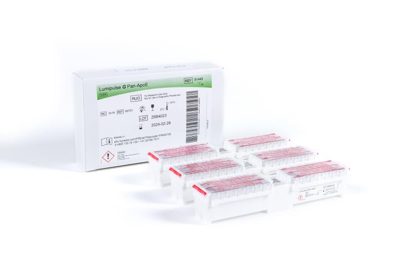 Immunoassay to be used with the automated LUMIPULSE G System for the quantitative measurement of all isoforms of the apolipoprotein E among which ApoE2, ApoE3, ApoE4 (Pan-ApoE) in human plasma. This product is not for use in diagnostic procedures, for ‘Research Use Only’. This product is for professional use only.