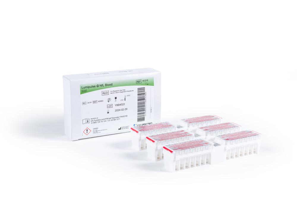 Immunoassay to be used with the automated LUMIPULSE G System for the quantitative measurement of neurofilament light (NfL) in human plasma and serum. This product is not for use in diagnostic procedures, for ‘Research Use Only’. This product is for professional use only.